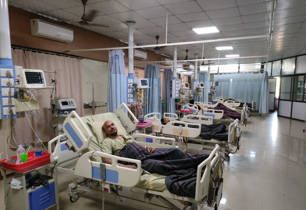 Care All types of critically ill patients are treated in I.C.U. e.g. acute myocardial infarction, diabetic coma, cardiac arythramias, head injury, poisoning snake bite, scorpion sting, cerebra vascular accident, intracerebral bleed, head injury, acute bronchial, asthma, spinal injury, multiple fractures etc cases are treated in critical care.
