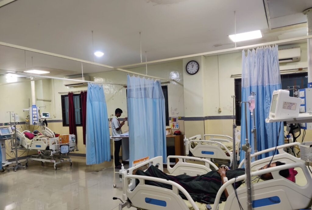 Hospital is situated on Mumbai – Goa Highway. All the traffic accident patients are shifted to hospital for treatment. Head injury patients, multiple fracture patients, different types of fracture, spinal cord injury, abdominal trauma like Spleenic rupture, DV perforation, liver tear injury, ectopic pregnancy, emergency L.S.C.S., bleeding esophageal varies etc. are treated in the hospital. Such type of patients are first examined in the casualty & then admitted immediately for further treatment.