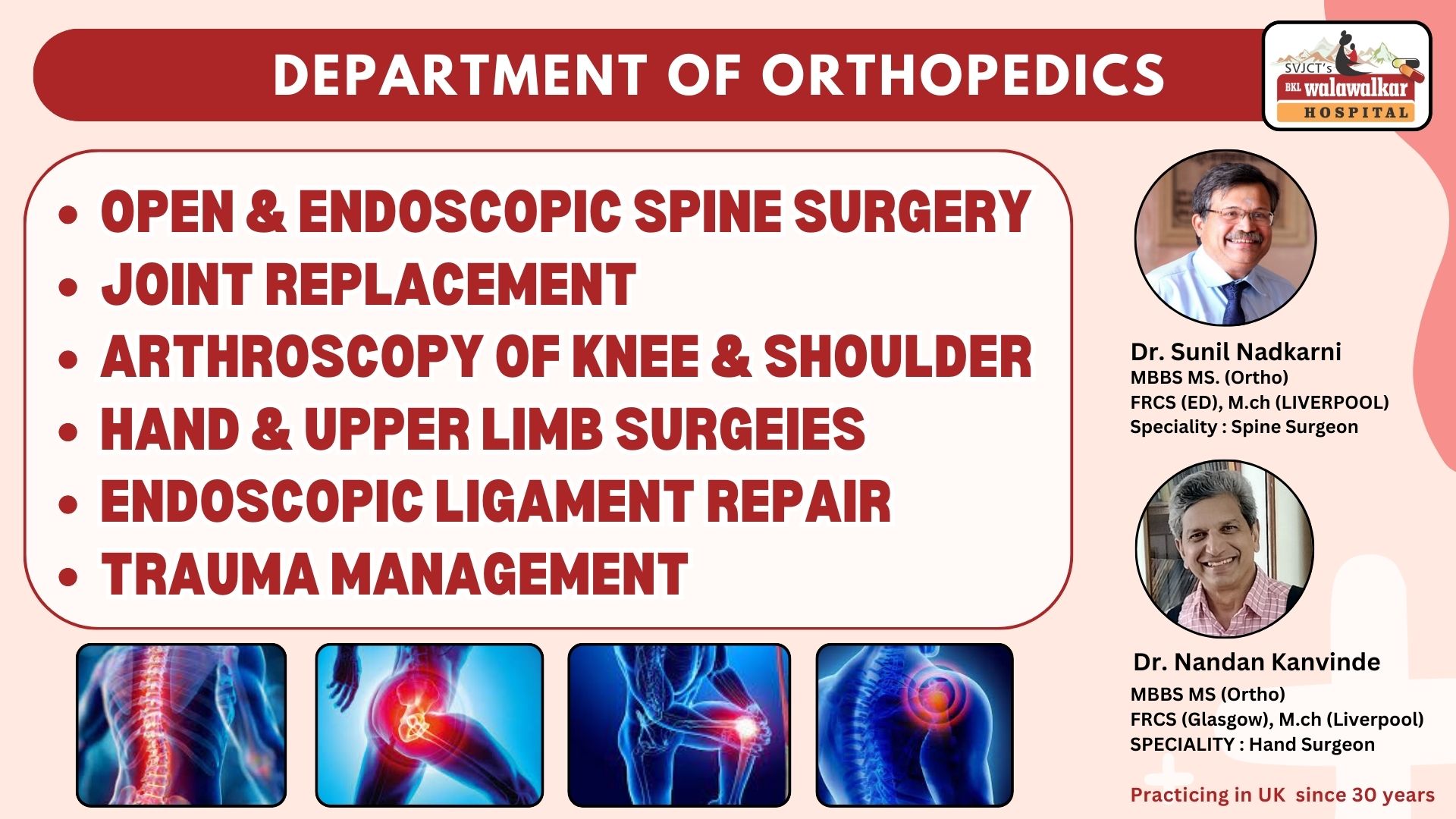 - A Fellowship Program in Joints and Spine is run in collaboration with the Maharashtra University of Health Sciences (MUHS).